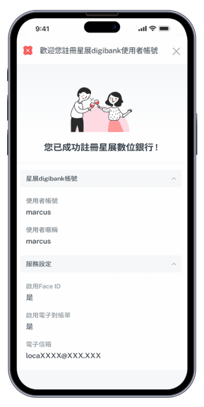 註冊完成後,提醒您定期於星展 digibank App 上設定/更新email,以取得最新優惠資訊