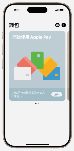 - 在 iPhone 打開 Apple「錢包」,點一下加號「+」即可開始加入。