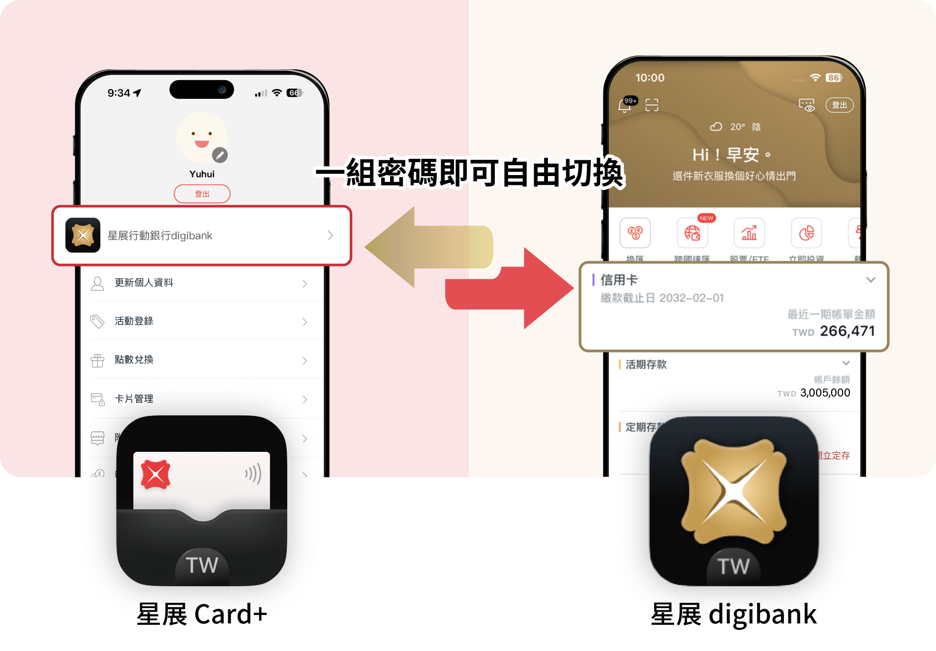 若您同時擁有星展銀行信用卡以及存款等帳戶,您只需註冊Card+ App或digibank App,
