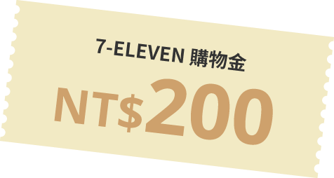 - 首次註冊:7-ELEVEN NT$200電子購物金