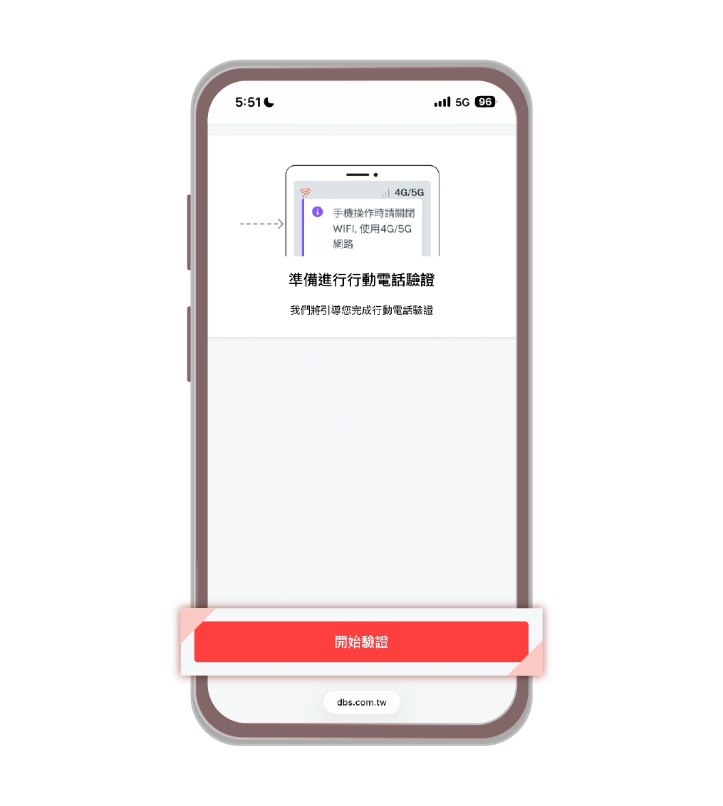 驗證時請暫時關閉Wi-Fi,並確保您的裝置已開