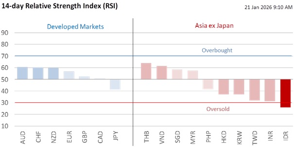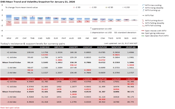 Against this backdrop, the greenback lost its haven appeal. The DXY Index depreciated 0.8% overnight to 98.56 overnight. Markets are alert to any announcements from the US and Japan, preferably a joint statement that uses coordinated language to address excessive volatility and disorderly one-sided market moves, a signal that Washington would not oppose Tokeyo’s stabilization efforts, including interventions in the JPY. Prime Minister Takaichi needs to stabilize both the JGB and JPY markets to prevent the united opposition from framing financial volatility as evidence of fiscal irresponsibility and policy loss of control. Markets do not rule out President Trump’s tendency to TACO (Trump Always Chickens Out) over Greenland, where past experiences have shown geopolitical escalation and tariff threats followed by partial walk backs. In the near term, do not expect a clean and sustainable trend but rather headline-driven volatility and a tendency towards range trading.