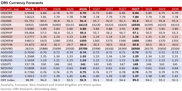 In a notable departure from trends after the Israel-US-Iran war broke out, the USD failed to capture haven flows last Friday (March 6) despite Brent crude oil prices surging above USD90/barrel amid the escalating conflict. Instead, stagflation risks and heightened political instability led US markets lower. The DXY Index dropped by 0.3% to 98.986. The S&P 500 Index plunged 1.3% to 6740, effectively taking out its two-month 6800 support level.